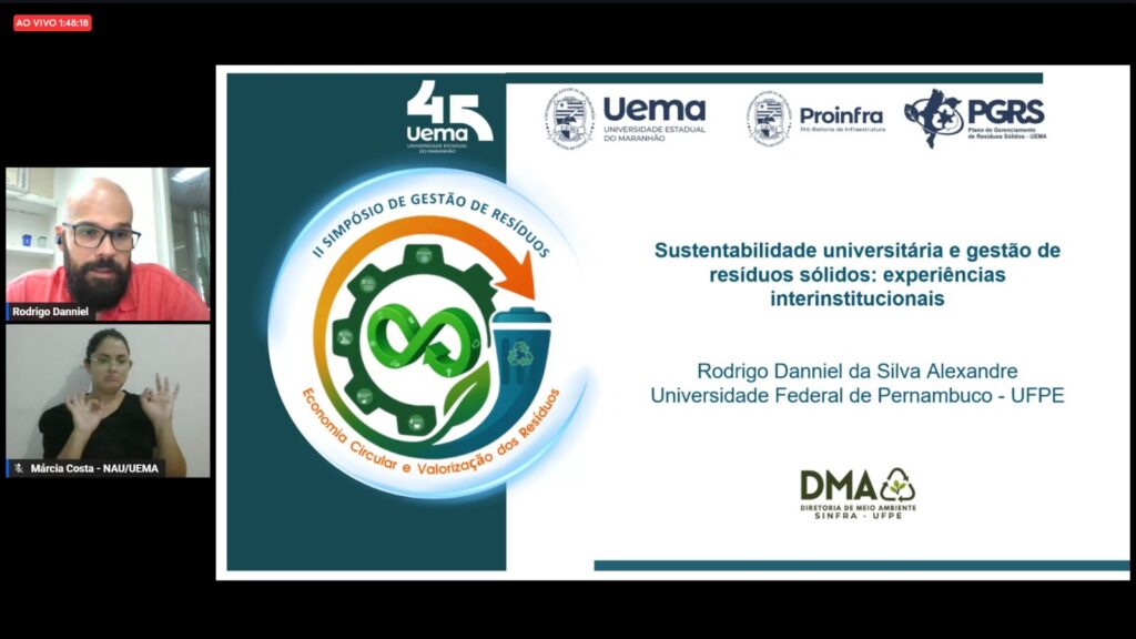 No dia 16 de abril de 2026, Pró-Reitoria de Infraestrutura (PROINFRA), por meio da Coordenação de Gestão de Resíduos Sólidos (CGRS) da UniversidadeEstadualdoMaranhão, deu continuidade ao II Simpósio de Gestão de Resíduos: Economia Circular e Valorização dos Resíduos, promovendo debates e troca de experiências entre instituições de ensino e especialistas da área. A programação da manhã contou com a mesa-redonda: “Boas práticas do Comitê de resíduos sólidos das Instituições de Ensino Superior do Estado do Maranhão”.
